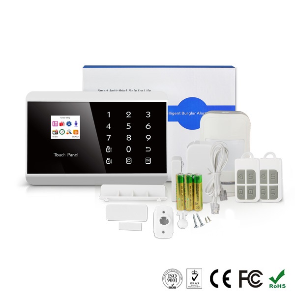 Las que hemos comprobado con menores prestaciones en el frente suelen poner GSM ALARM SYSTEM e incluye un sensor PIR como el que se muestra :